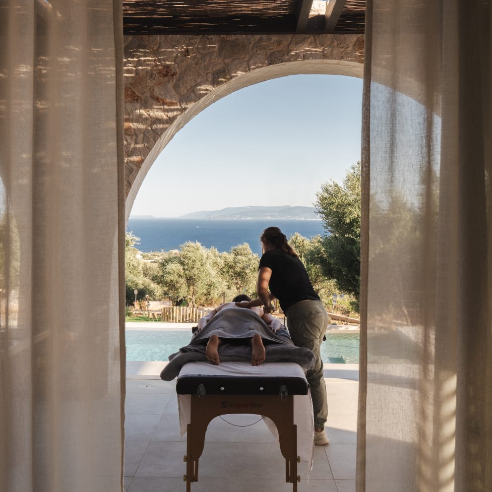 Ξεκουραστείτε με ένα μασάζ προσαρμοσμένο στις δικές σας ανάγκες, αφήνοντας το σώμα και το μυαλό σας να χαλαρώσουν και τον ρυθμό σας να συγχρονιστεί με την απαλή αρμονία του νησιού, μέσα στην ιδιωτικότητα της βίλας σας.